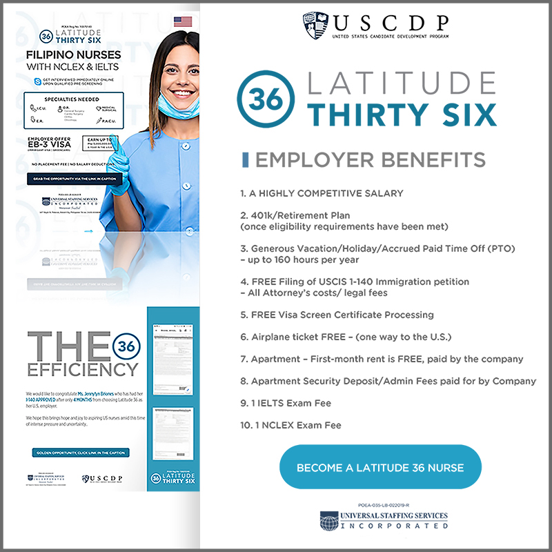 Universal Staffing Services, Inc. (UNISTAFF) works with well-regarded US employers. They offer EB3 Visa to qualified nurses who have gone through interviews and have successfully completed all that is required of them. Once you have shown that you have what it takes to become a USRN, you’ll obtain a Green Card by getting sponsored by our employer.